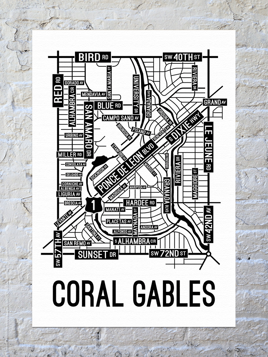 Coral Gables Map Print, Coral Gables Map Poster Wall Art, Fl City
